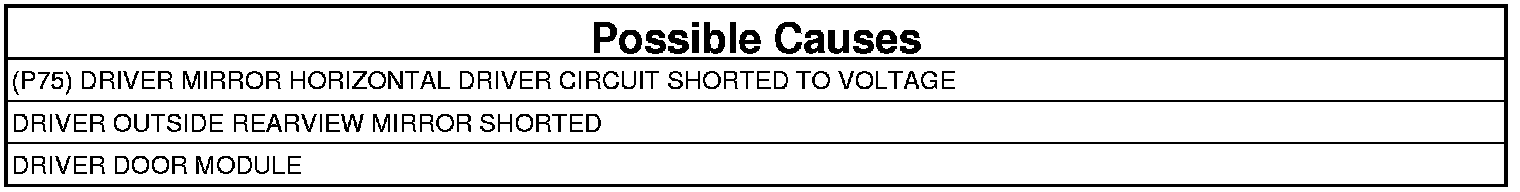 If the Driver Door Module senses voltage on the (P75) Driver Mirror Horizontal Driver circuit within 10 ms of turning on the Mirror Horizontal Driver Output.