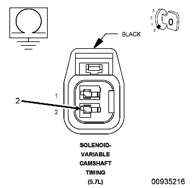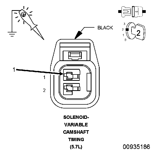 2. Measure the resistance between ground and the (Z906) VCT solenoid ground circuit at the VCT solenoid harness connector.
