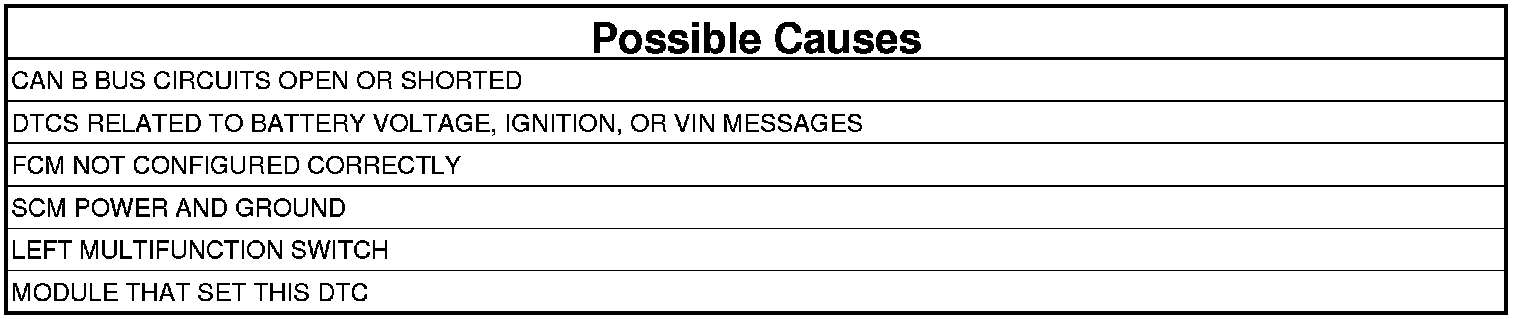 NOTE: Check for FCM configuration, CAN B or C hardware electrical, VIN Missing/Mismatch, battery or ignition related DTCs.
