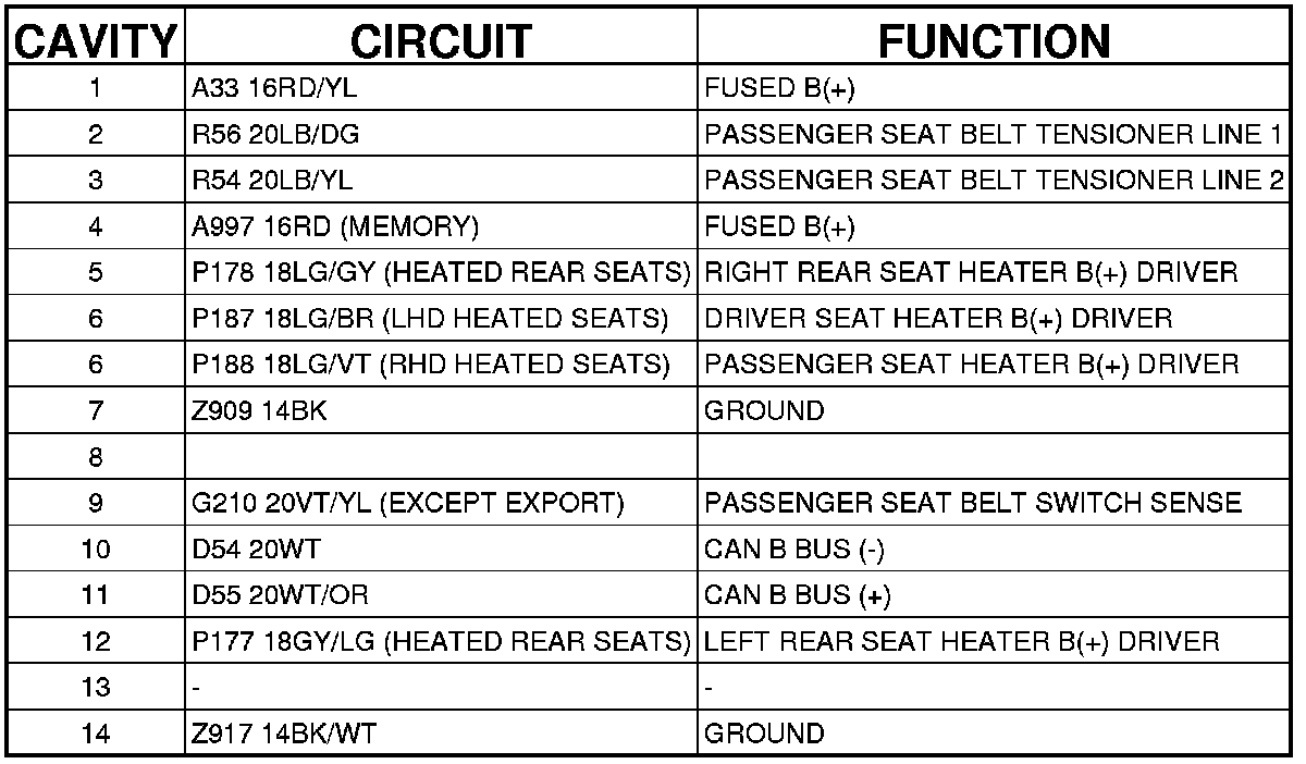 C305 - (PASSENGER SEAT SIDE) 14 WAY