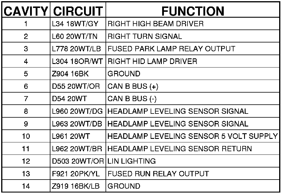 -RIGHT (HID) - (HEADLAMP AND DASH SIDE) 14 WAY
