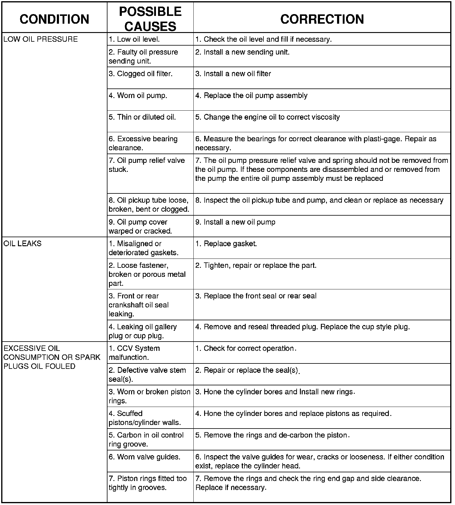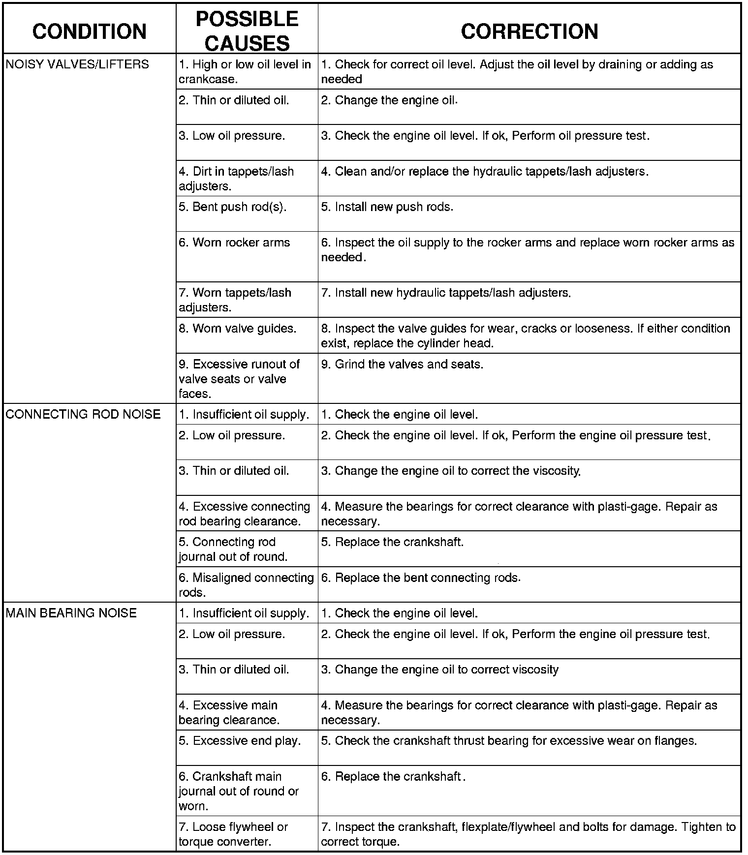 ENGINE MECHANICAL DIAGNOSIS CHART
