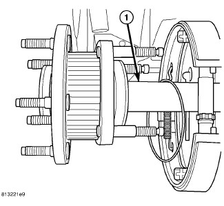 3. Install axle shaft (1) into axle tube and backing plate with new O-ring on axle.