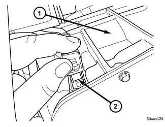 12. Move transmission forward. Then raise, lower, or tilt transmission (2) to align the converter housing with the engine (1) block dowels.