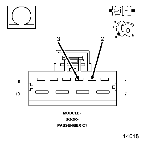 1. Measure the resistance between the (Q304) Passenger Window Hall Sensor B Signal circuit and the (Q990) Passenger Window Hall Sensor Return circuit in the PDM C1 connector.