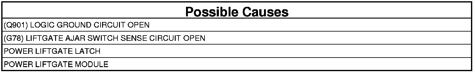 - Repair the (G78) Liftgate Ajar Switch Sense circuit for a short to ground. If there are no problems with the (G78) Liftgate Ajar Sense circuit and the (Q901) Logic Ground circuit between the Power Liftgate Drive Unit harness connector and the Power Liftgate Module C2 harness connector, replace the Power Liftgate Module.