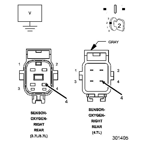 1. Measure the voltage on the (K904) O2 Return Downstream circuit in the 2/2 O2 Sensor harness connector.