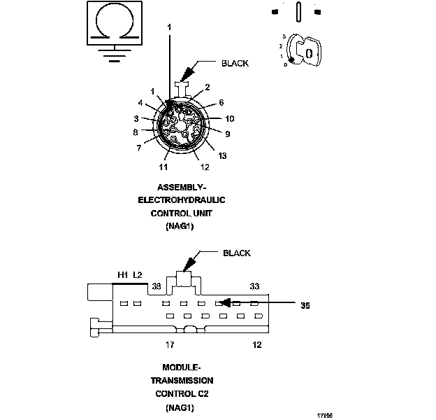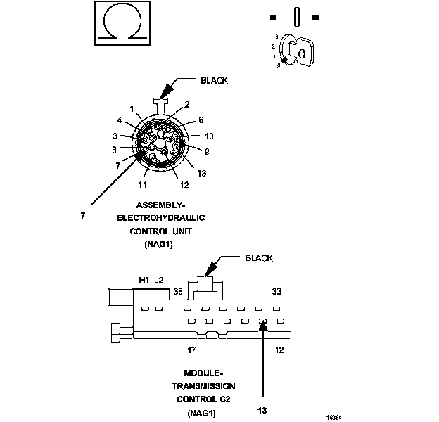 1. Measure the resistance between the (T13) Sensor Ground circuit to all the other circuits in the Electrohydraulic Control Unit Assembly harness connector.