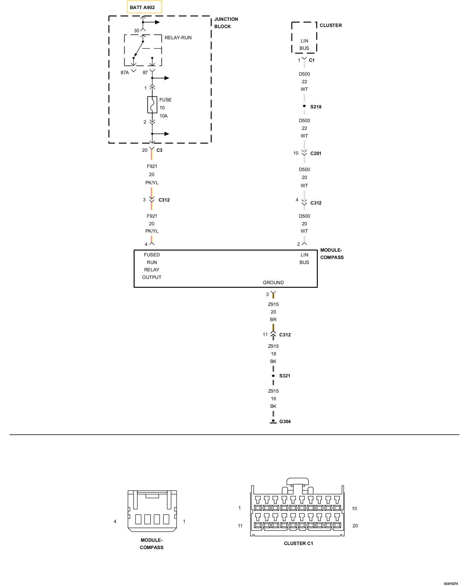 2. Measure the voltage of the (F921) Fused Run Relay Output circuit at the Compass Module harness connector.