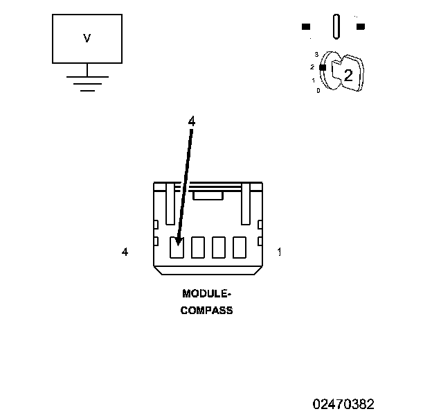 2. Measure the resistance between ground and the (Z915) Ground circuit at the Compass Module harness connector.