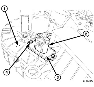2. Install the two screws (4) that secure the rear blower motor resistor to the rear HVAC housing. Tighten the screws to 2 Nm (17 in. lbs.).