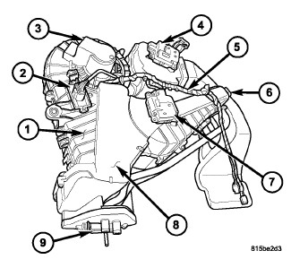 The rear HVAC housing must be removed from the vehicle for service of the mode door actuator, blend door actuator, blower motor and blower motor resistor and, it must be disassembled for service of the A/C evaporator, heater core, mode-air door and blend-air door.