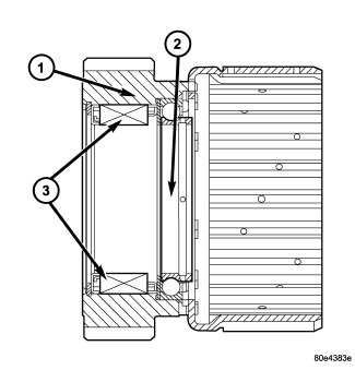 6. Check the anti-friction bearing (2) in the rear planetary sun gear for damage. Replace as necessary.