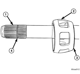 3. Slide cage (2) onto the shaft (1) with the small diameter (3) end towards the boot.
