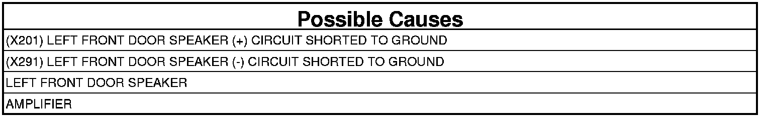 - Repair the short to ground in the (X201) Left Front Door Speaker (+) circuit.