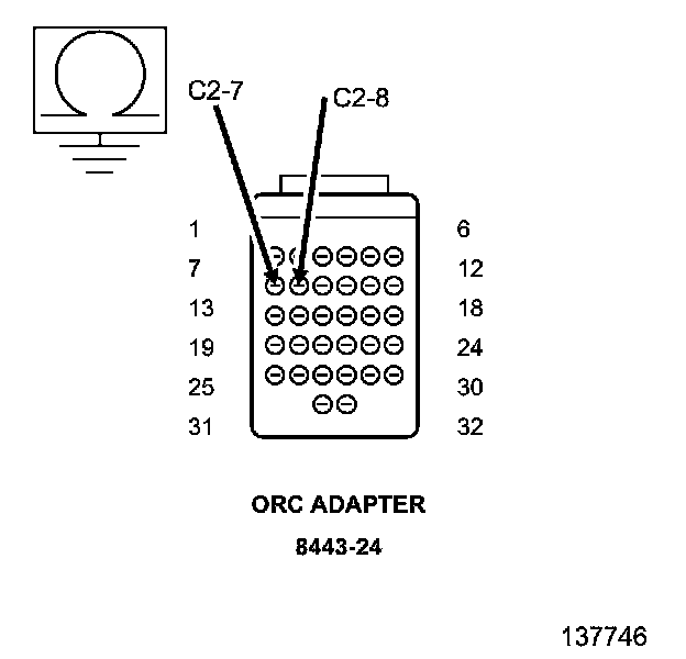 When powered, the Occupant Restraint Controller (ORC) sends a test current to the squibs to verify the integrity of the squib and wiring. These circuits are maintained in a "floating" configuration at the module (connected to neither power nor ground) as protection against inadvertent deployment. Use of the SRS Load Tool Kit 8443 in the tests below substitutes a suspect squib with a known good component. The use of the SRS Load Tool Adapter provides a test point as well as a method for opening the shorting bar connections within the harness connector.