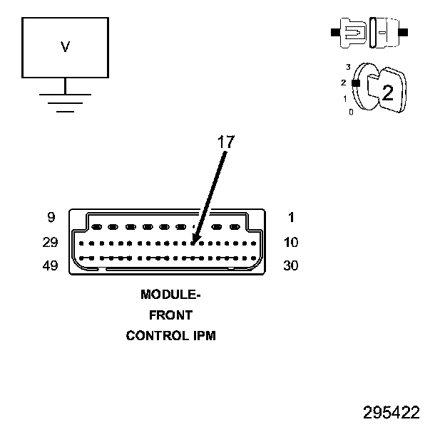 4. Measure the voltage of the (F942) Fused Ignition Switch Output circuit in the Front Control IPM connector.