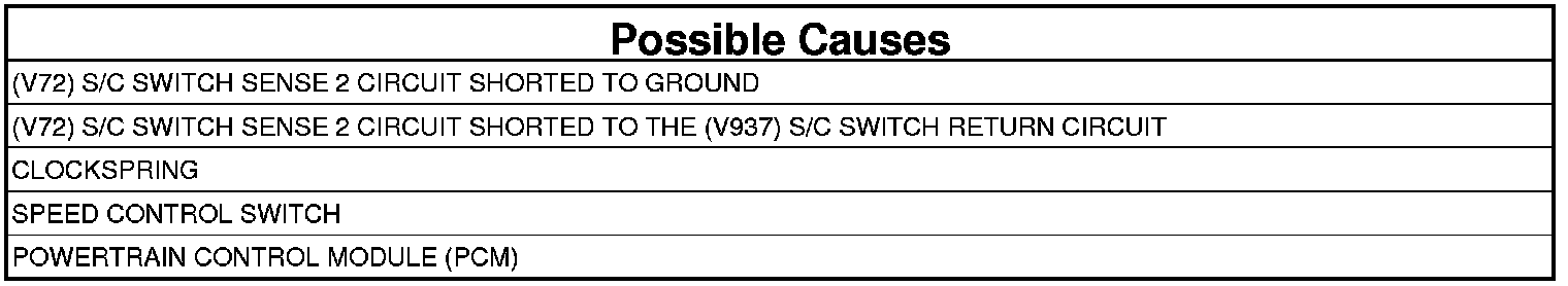 5. (V72) S/C SWITCH SENSE 2 CIRCUIT SHORTED TO THE (V937) S/C SWITCH RETURN CIRCUIT