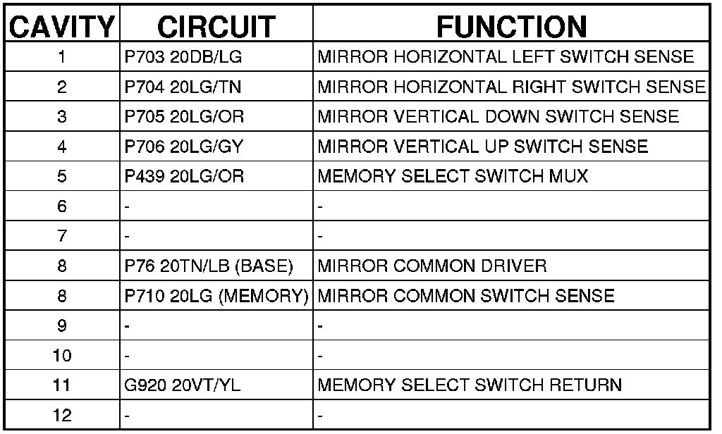 Connector C3 (MEMORY) - (DRIVER DOOR) 12 WAY