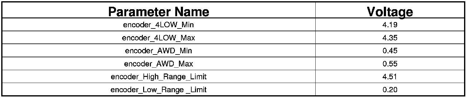 - AWD TARGET REGION - The position shall be considered AWD if the voltage is greater than or equal to encoder_AWD_min Volts and it is also less than or equal to encoder_AWD_max Volts.