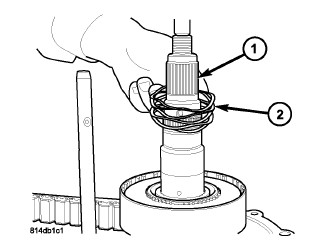 23. Install the retaining ring (2) onto the front output shaft (1).