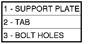8. Rotate the thrust bearing support plate (1) so that the tab (2) is pointed between the two bolt holes (3) as shown.