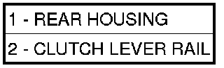 17. Install the clutch lever rail (2) into the rear housing (1) and clutch lever.