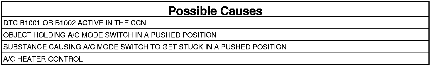 1. Inspect the A/C Heater Control for anything that would cause the A/C mode switch to stay or stick in a pushed position.