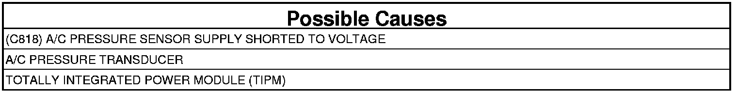 - Repair the (C818) A/C Pressure Sensor Supply circuit for a short to voltage.