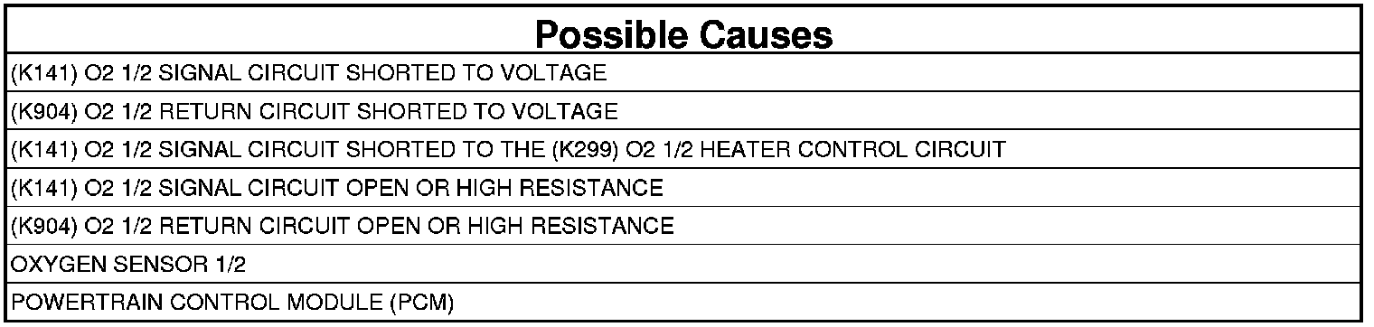 - Repair the (K141) O2 1/2 Signal circuit for a short to voltage.