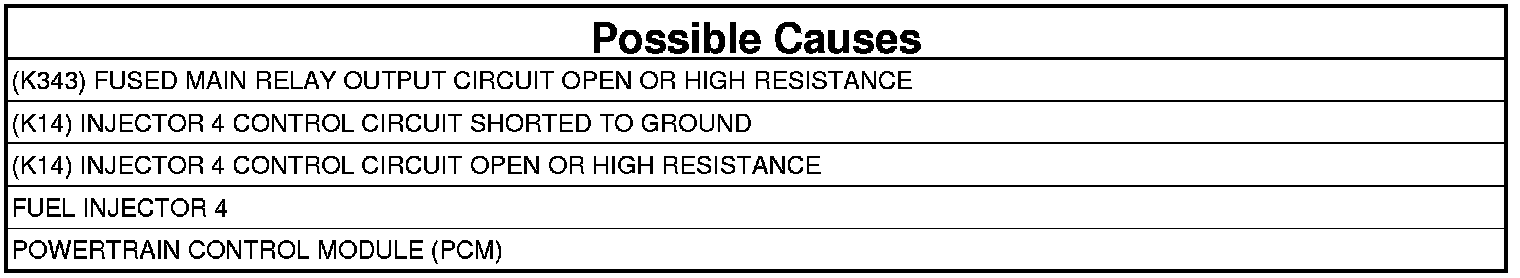 - Repair the (K14) Injector 4 Control circuit for an open circuit or high resistance.