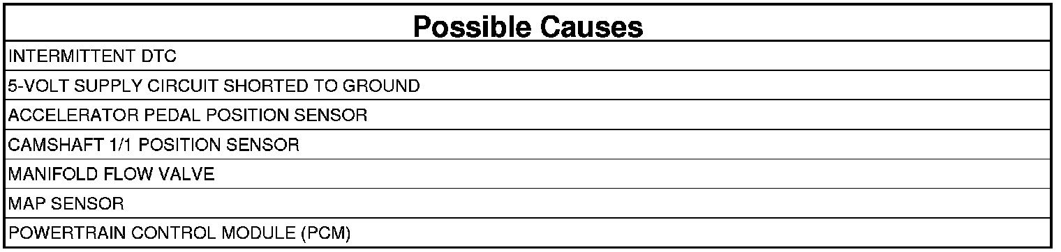 The PCM detects low voltage on the 5 volt supply circuit.