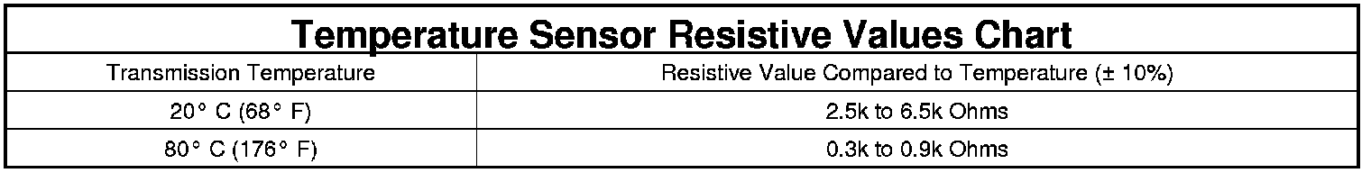 NOTE: It may take up to 10 to 1two minutes of continuous driving to accurately test the Transmission Temperature Sensor.