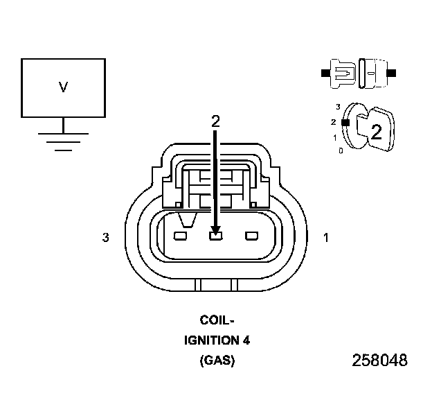 2. Using a 12 volt test light connected to 12 volts, check the (K15) Coil 4 Control circuit in the Ignition Coil 4 harness connector.