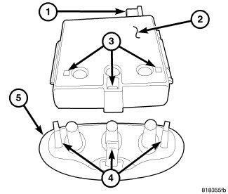 7. Insert the mounting tab (4) on the lamp lens (5) into the right side of the lamp assembly and pivot the lens up until it snaps securely in place.
