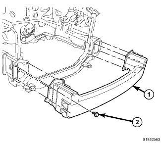 5. Remove 8 fasteners (2) from bumper reinforcement (1).