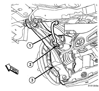 1. Install the stabilizer bar and install the bushings and bolts (1).