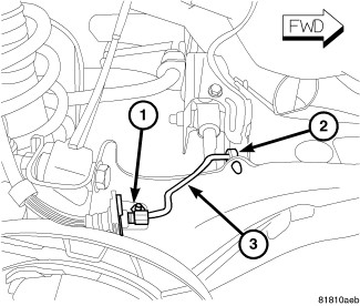 23. Position the brake lines (3) back into place, connect the clips (2) and install the bolts (1).