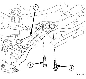 14. Install the trailing link (1) bushing bolts (2 and 3):