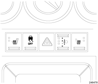 The ESP Off switch turns the Electronic Stability Program off and back on. The ESP has three modes: Full-On, Partial and Full-Off. The ESP default mode is Full-On with every key-on. Pressing the ESP Off switch button in the center stack once activates the Partial mode. In Partial mode, Traction Control is deactivated and ESP operates at a higher threshold, therefore, it will not come on as aggressively as in the Full-On mode. Pressing and holding the ESP button for five seconds or longer turns the system completely off. This condition is confirmed by a single warning chime and a text message in the odometer display "ESP FULL OFF." The system can be returned to "normal" Full-On mode by briefly pressing and releasing the ESP Off switch. The switch resets itself each time the ignition is cycled.