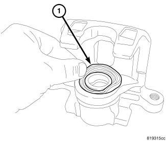 6. With finger tips, seat the dust boot lip (1) into the boot groove in the caliper bore. Trace around the outside perimeter of the dust boot with a finger tip making sure the lip is properly seated in the groove and not much air is trapped behind the boot.