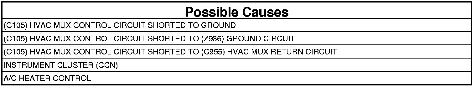 - Repair the (C105) HVAC MUX Control circuit for a short to ground.