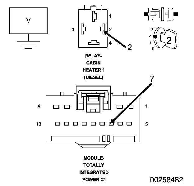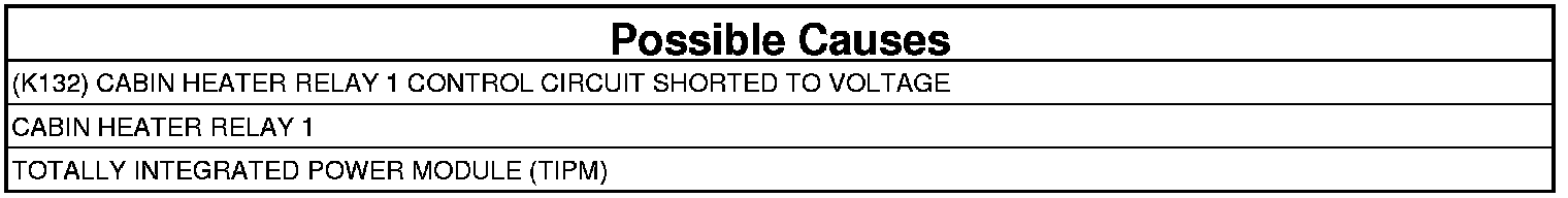 - Repair short to voltage on the (K132) Cabin Heater Relay 1 Control circuit.