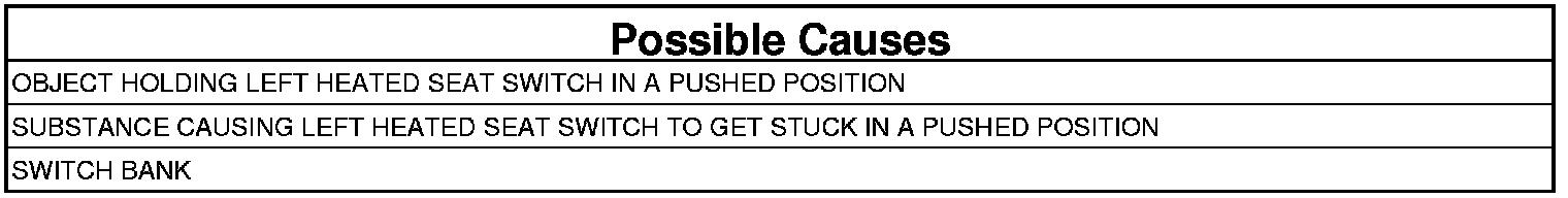 1. Inspect the Left Heated Seat switch for anything that would cause it to stay or stick in a pushed position.