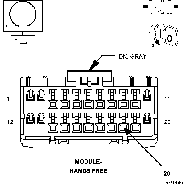 - Inspect the wiring and connectors for damage or shorted circuits. If OK, replace and program the Hands Free Module.