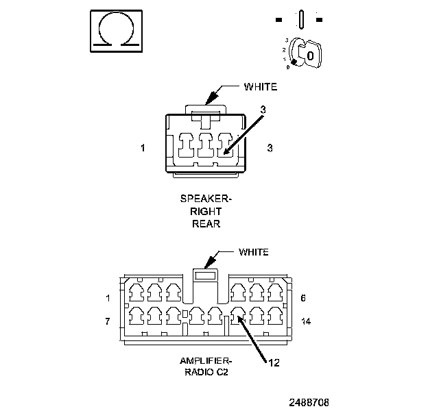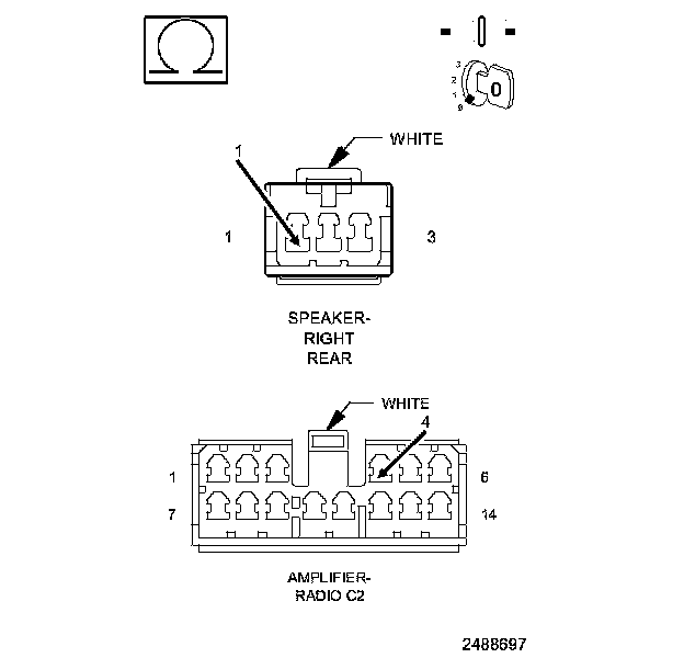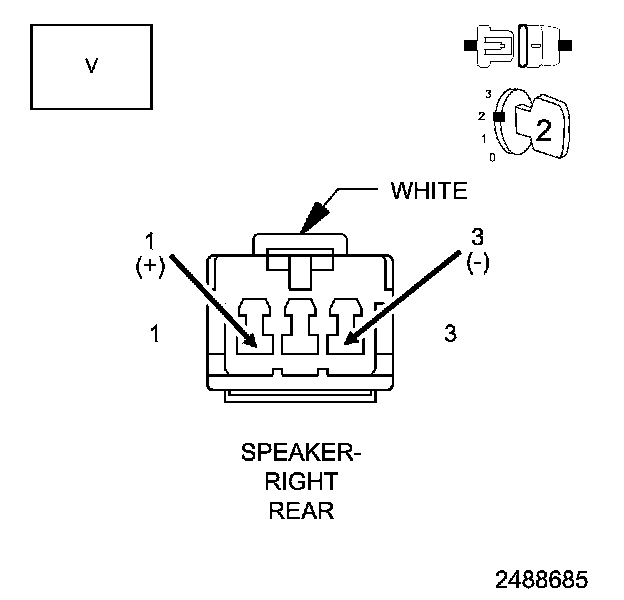 6. With a voltmeter set to read in A/C voltage, measure the voltage of the Amplified Right Rear Speaker circuits in the Amplified Right Rear Speaker harness connector.