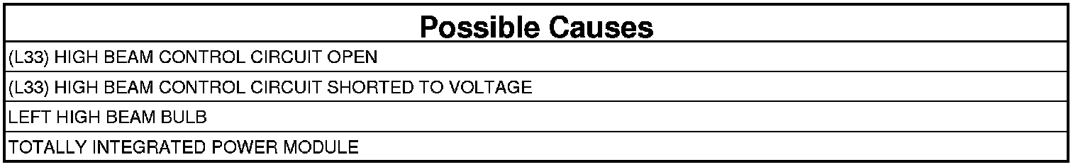 - Repair the (L33) High Beam Control circuit for a short to voltage condition.