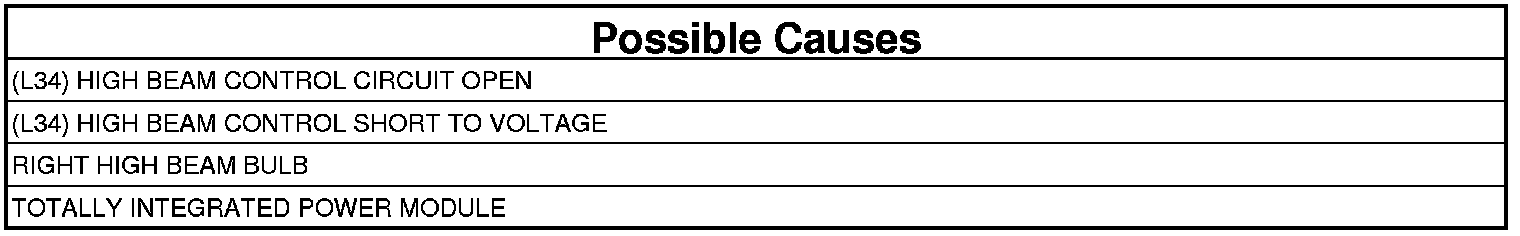 - Repair the (L34) High Beam Control circuit for a short to voltage condition.