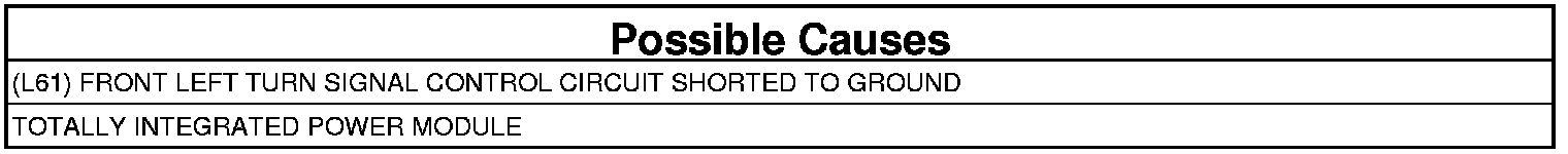 - Repair the (L61) Front Left Turn Signal Control circuit for a short to ground.