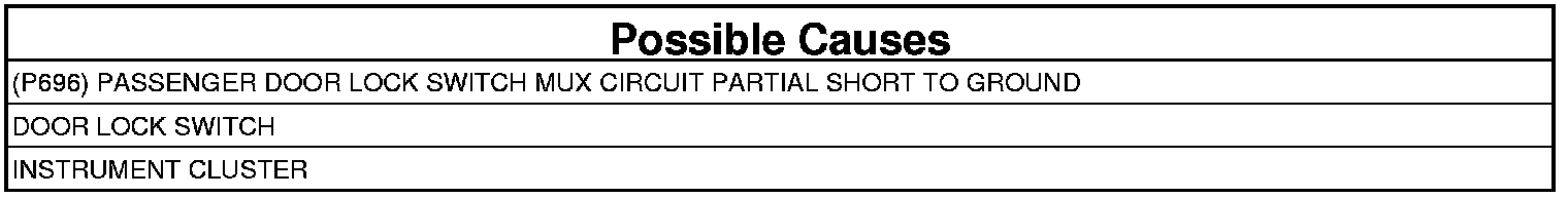 3. (P696) PASSENGER DOOR LOCK SWITCH MUX CIRCUIT PARTIAL SHORT TO GROUND